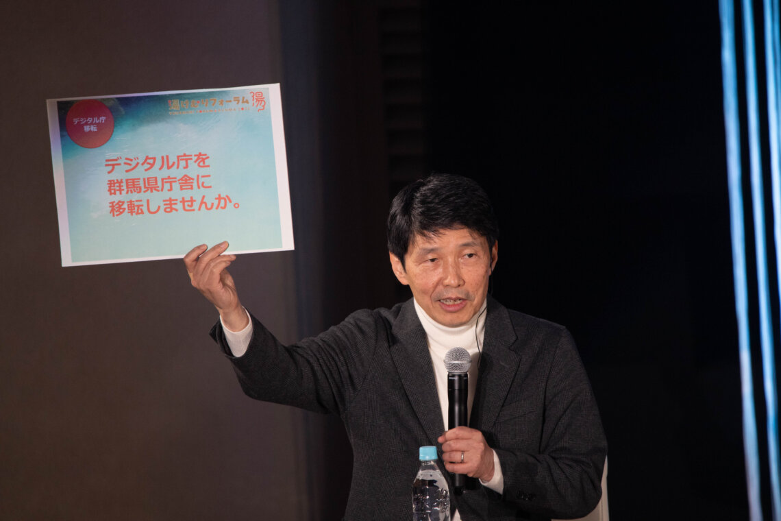 今、群馬県は本当に新しいことをいろいろとやっていて、県庁舎の30階に初めて民間企業を受け入れることを発表しました。これは、他のどの県庁でもやっていないことです。私はデジタル庁のスタッフが働けるように机を配置し、誰でも来れるような環境を作ることができれば良いと思っています。いかがでしょうか。