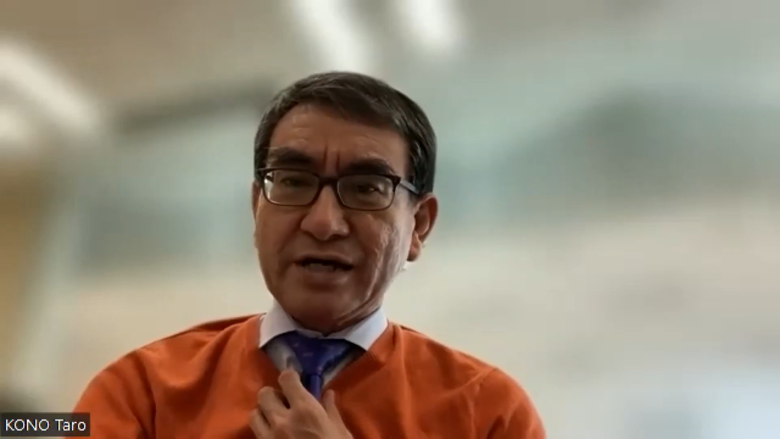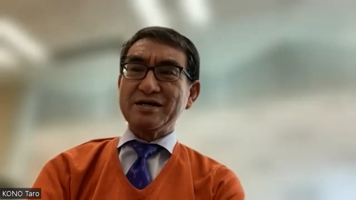 皆さんこんにちは。河野太郎です。今日は草津にお伺いするのを本当に楽しみにしておりましたが、急きょ夕方から臨時閣議が入り、残念ながらオンラインということになってしまいました。みなさんに直接お会いして、いろいろなお話をさせていただきたいところでしたので、本当に残念です。