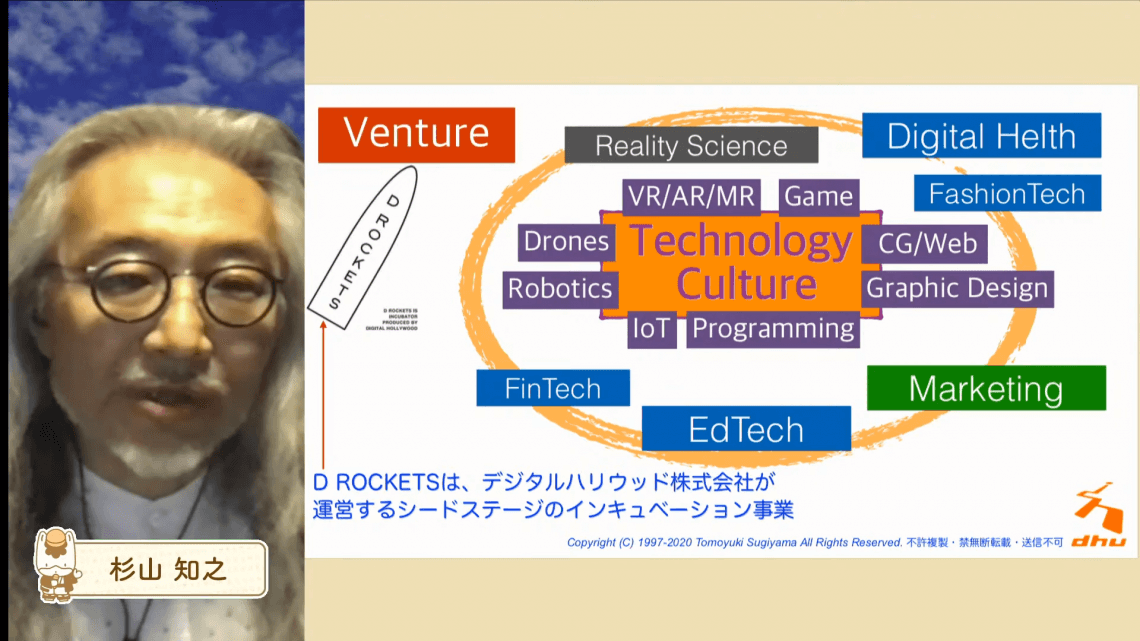 宇留賀:3人目は、デジタルハリウッド大学を設立されて、現在も学長を務められている杉山さんです。