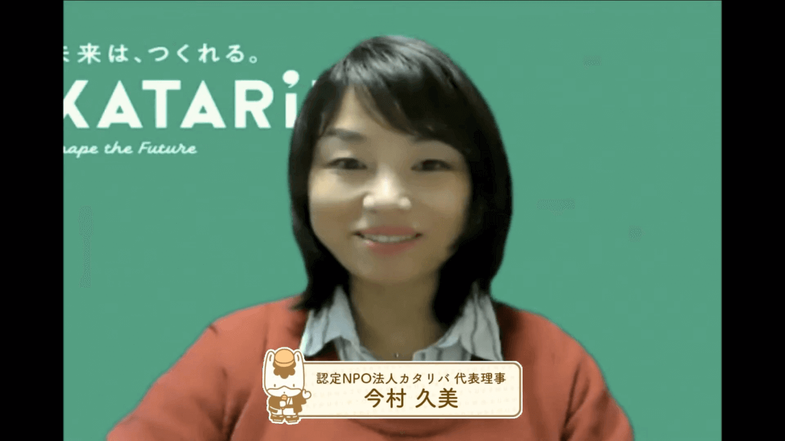 宇留賀:次に、今村久美さんです。認定NPO法人カタリバの代表理事として子どもたちの学びの意欲を引き出す活動や、子どもたちの居場所作りなどに取り組まれていらっしゃいます。