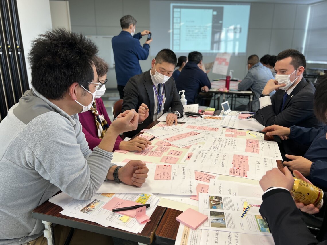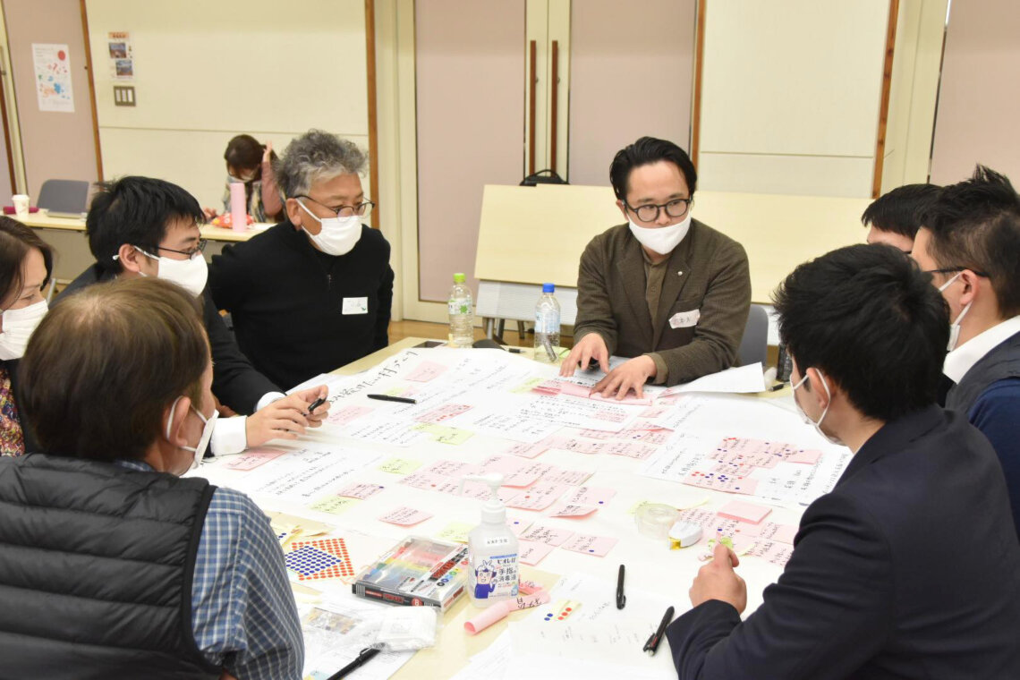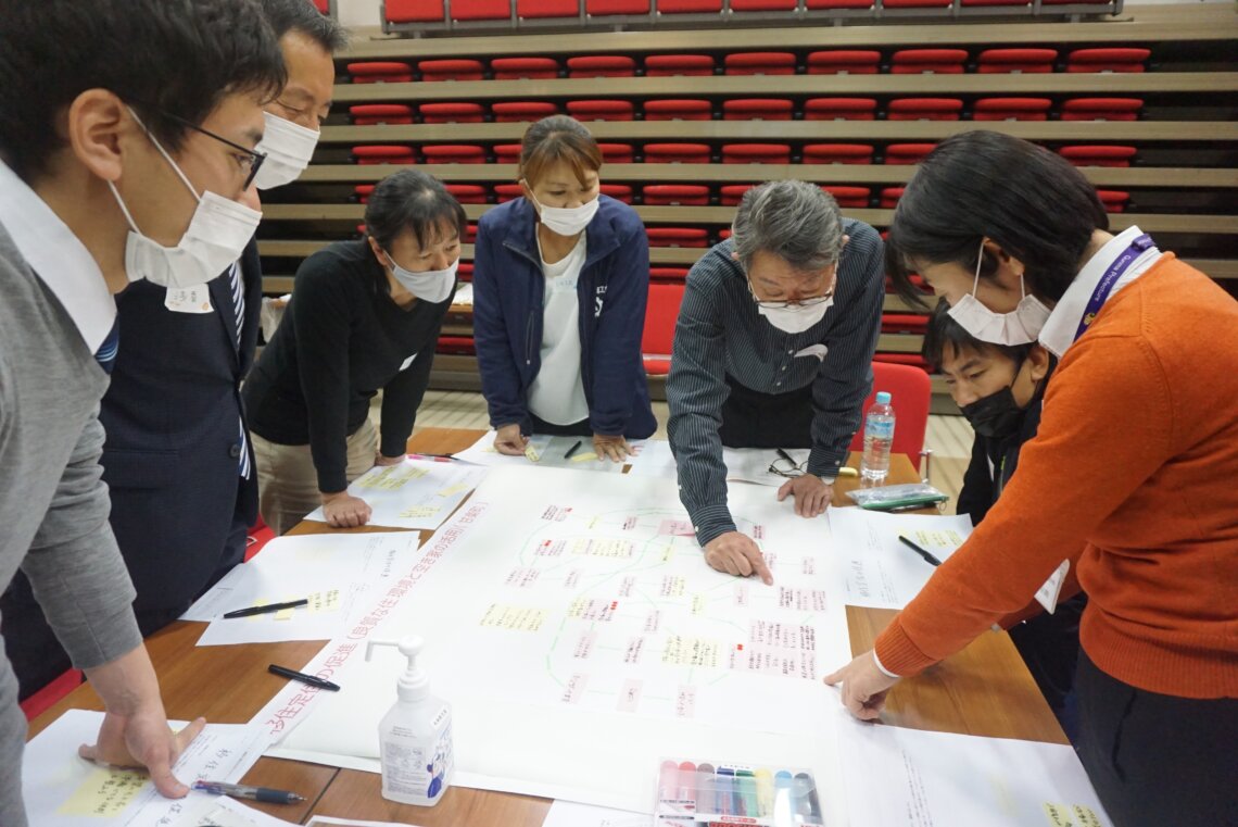 「持続可能な地域をつくる未来共創ワークショップ」では、地域別ワークショップの前後にファシリテーターとなる行政職員向けの研修を行いました。富岡市役所からは企画課の3名がファシリテーターを務めました。