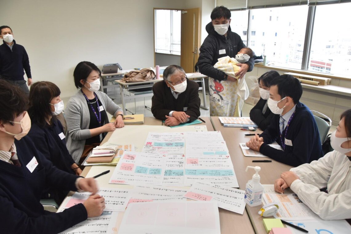 男性も女性も、20代から50代まで、幅広い世代が参加したワークショップ。その中でも桐生みどりエリアでのワークショップに参加された加藤さんは、新生児と一緒に参加!チームのみんなで代わる代わる抱っこをしながら、ひときわ熱くテーマについて議論している様子から、集まったメンバーの想いの強さを感じました。