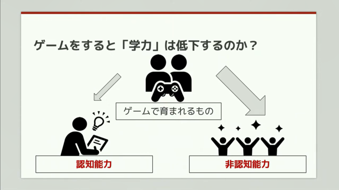 学力低下については、そもそも「ゲームをすると学力が下がる」というのは本当か疑問に思っています。確かに、認知能力を高めるためにはあまり役に立たなそうなものもあります。しかし、情報を瞬時に判断して反射的に利用する情報活用能力、自分の得意不得意を分析する能力、チームで戦術を考えるためのコミュニケーション能力など、非認知能力を高めるためには十分に役立ちます。さらに、ゲームは身体的な障害の壁を乗り越えるツールになるかもしれません。実際に、子どもたちが男女混合チームで大会に臨んでいるのを見て、ゲームは多様性を認め合いながらできるツールになっているのだと実感しました。