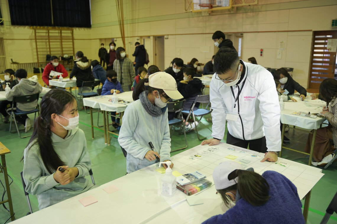 今回のイベントでは「群馬の未来の空」を考える舞台としてみなかみ町役場職員の解説を聞きながら、自然豊かな地域ならではの発想を行いました。「温泉×ドローン」「観光×ドローン」「環境保全×ドローン」といったテーマをもとに、地域に根ざしたリアルな言葉が近未来の新しい豊かさを描き出しました。