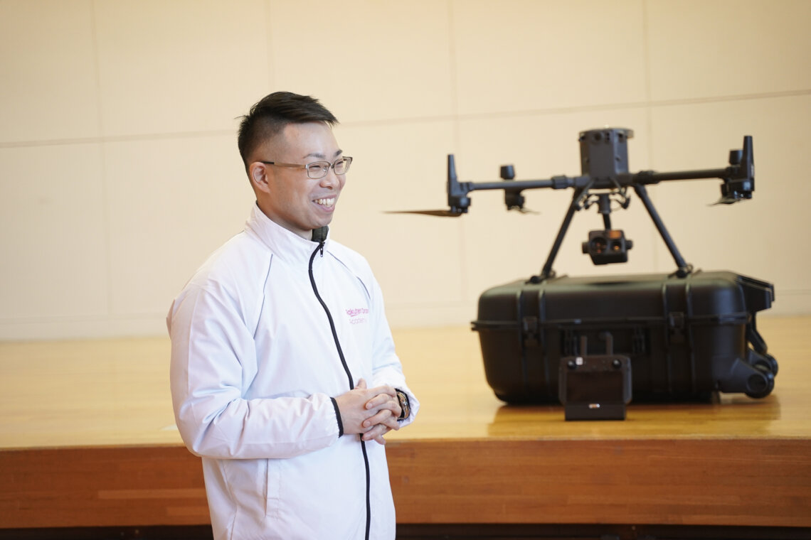 ドローンのデモフライト・操縦体験を担当した楽天グループ株式会社の<遠山さん>