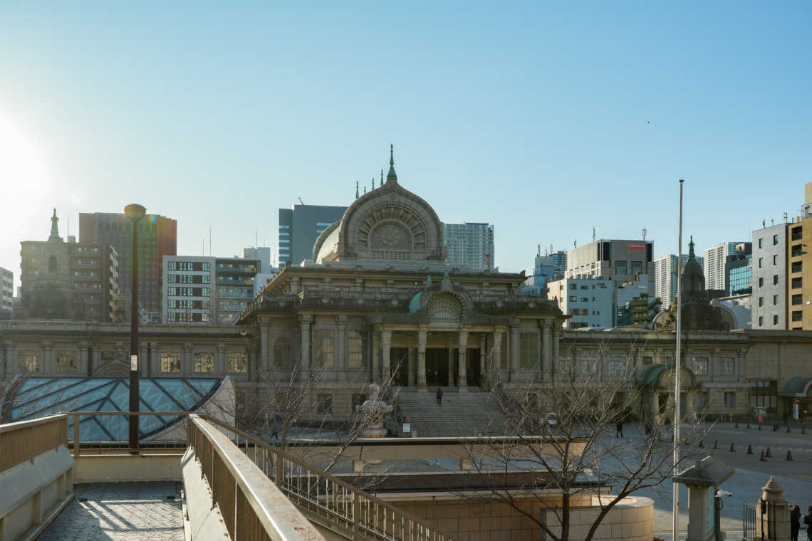 ツアーの始まりとなる集合場所は、東京メトロ日比谷線の築地駅から徒歩1分の「築地本願寺」。1967年に浅草に創建、その後2度の火災に見舞われながらも再建して1934年に現在の姿になったお寺です。その本堂、門柱、石塀は国の重要文化財に指定されています。