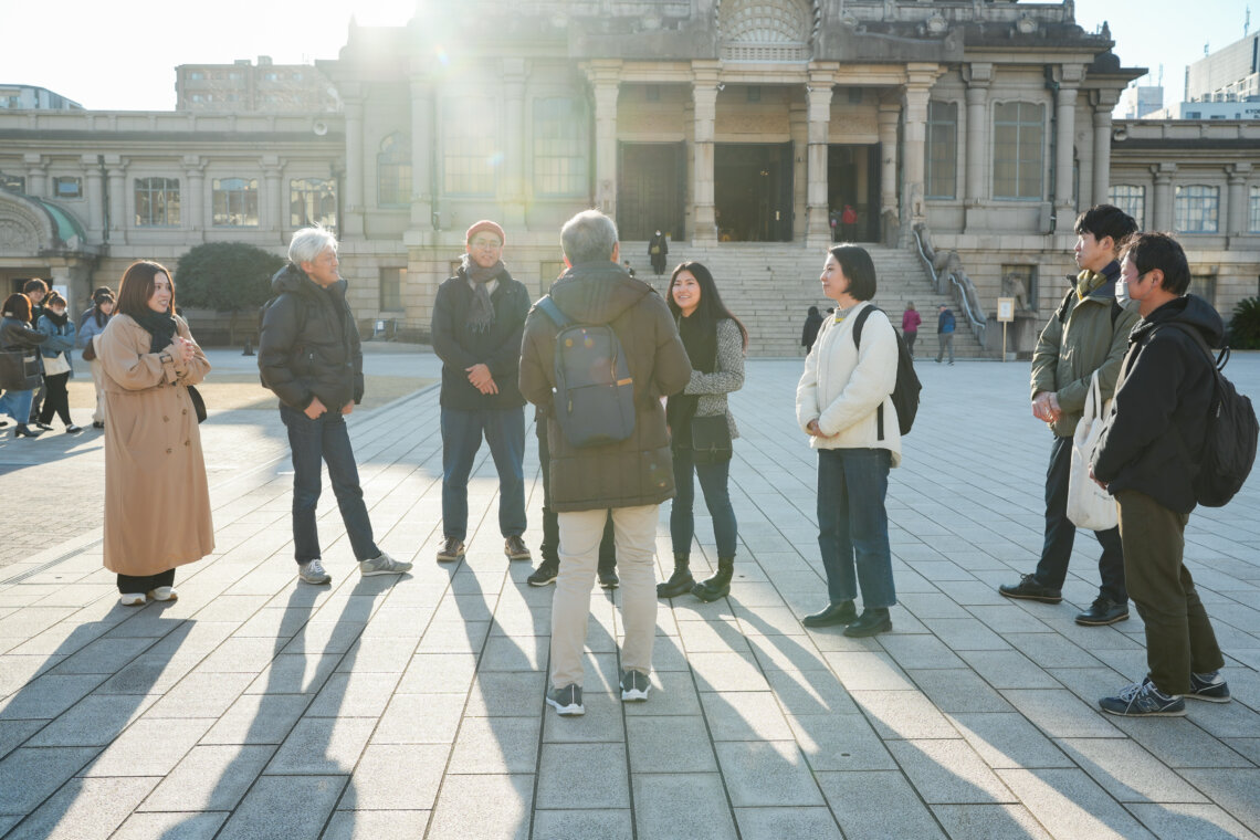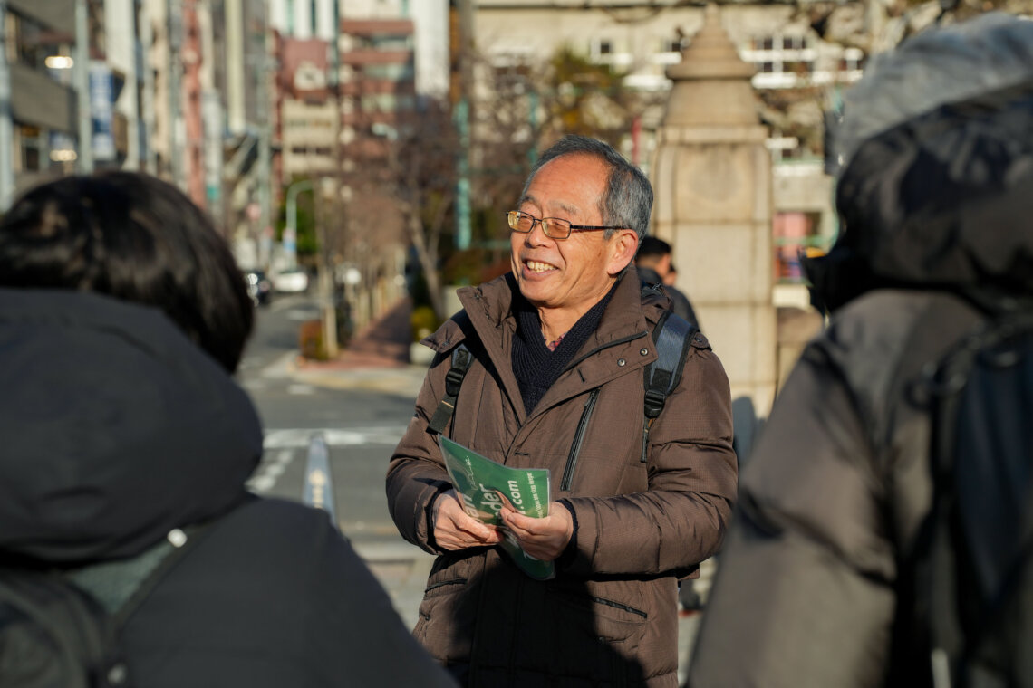 講座は座学研修が中心ですが、レギュラーコース同様、フィールドワークも用意されています。コース開講初年度となる今回は、「インバウンド向けガイド付きツアー」の実地体験が行われました。