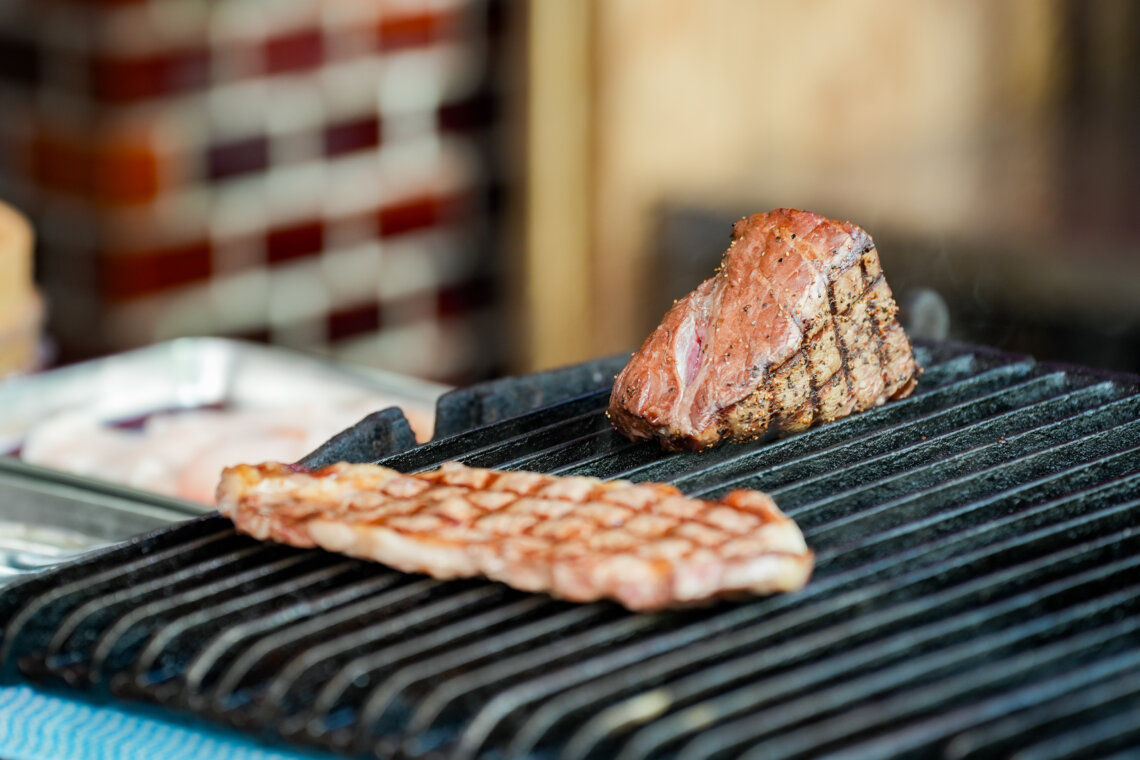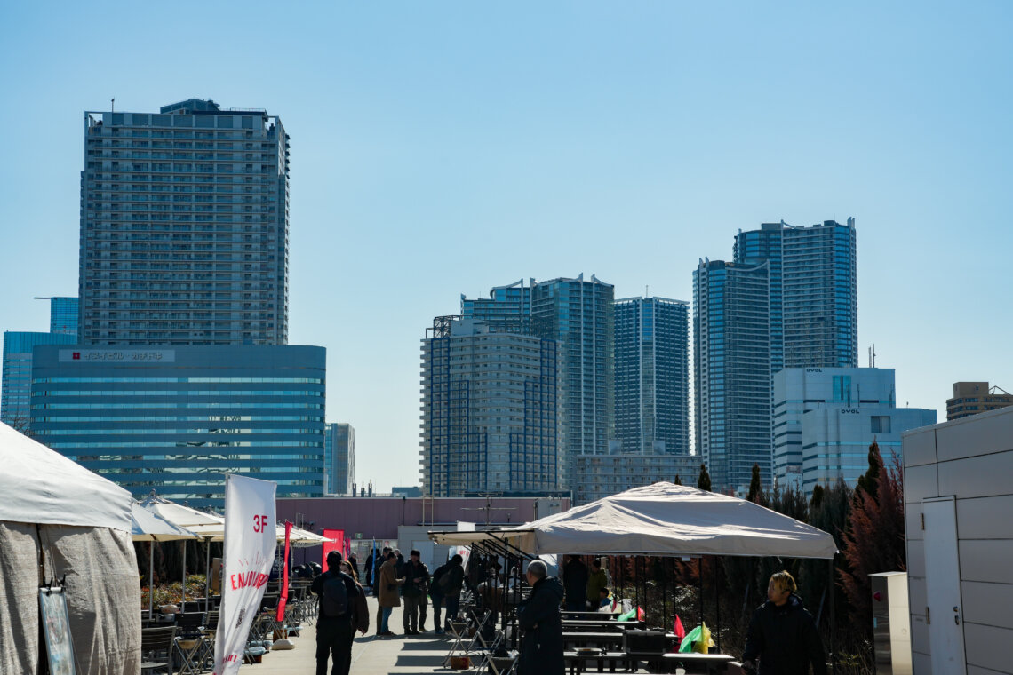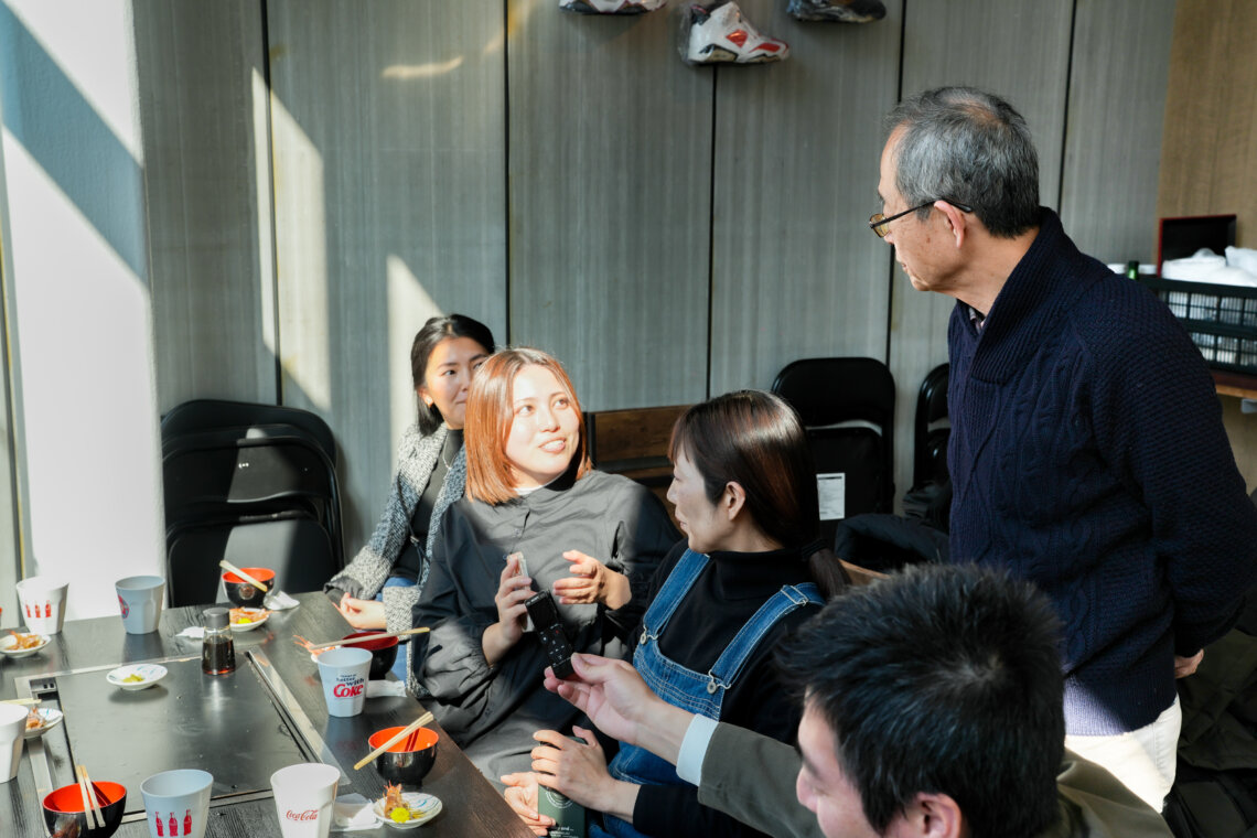こちらは、2023年にオープンしたばかりの「築地魚河岸 浜焼きBBQテラス」。開放感のある屋上テラスで、買った食材をそのまま網で焼いて食べることができる新スポットです。大きなビルを目の前に海鮮を食べるという珍しい光景に、塾生もインスピレーションを受けているようでした。