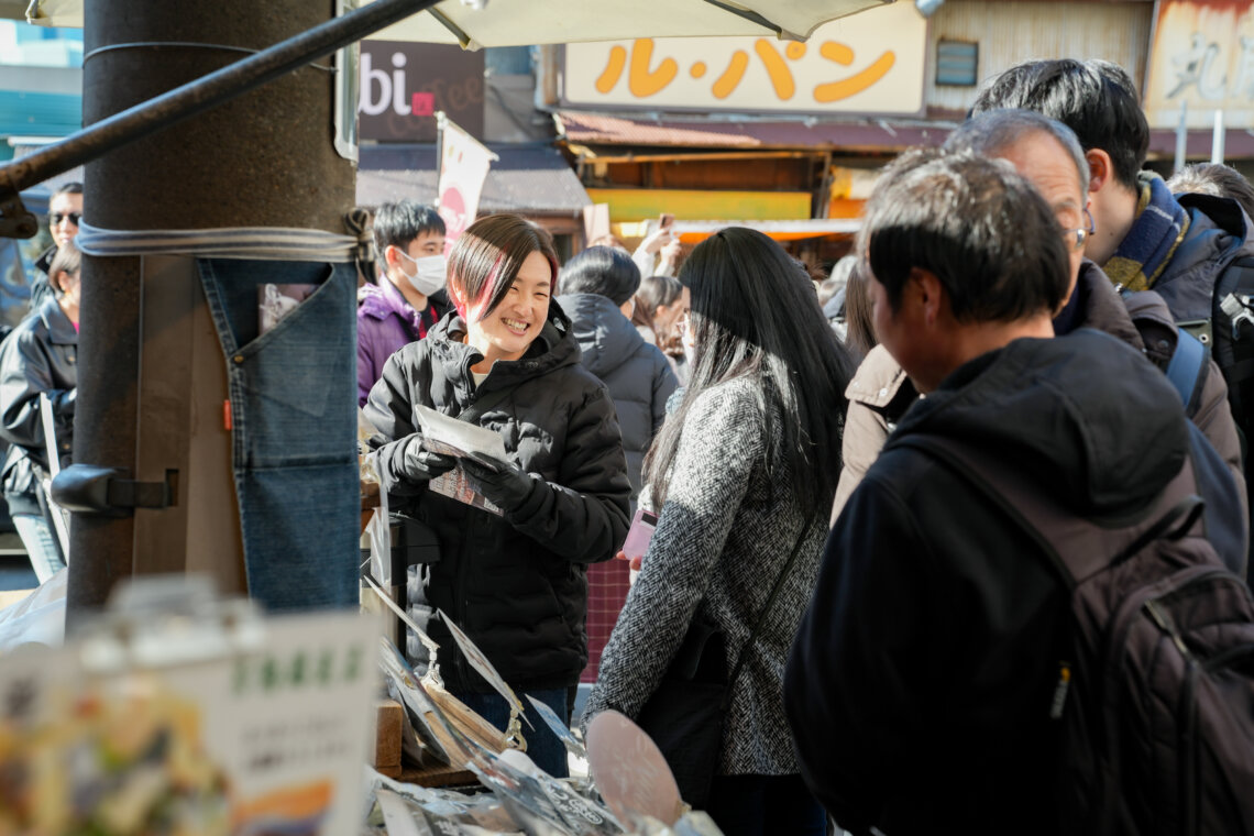 現在、築地場外市場には400以上の店舗が集合しています。コロナ禍で廃業したお店もあるそうですが、ツアーが行われた2024年2月には非常に多くの来客があり、かつての賑わいが戻りつつあるようです。