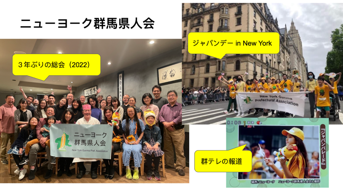 大澤 続きましてこちらはライフワークといいますか、ボランティアで、ニューヨーク群馬県人会という市民団体を15年以上運営しています。左は3年ぶりの総会ですね。コロナの感染拡大でしばらく対面で会うことがかなわなかったのですが、昨年3月に規模を縮小して開催しました。