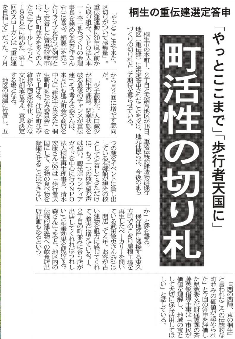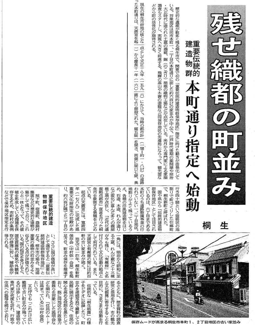 行政や住民の意識が高まるにつれ、上毛新聞でも重伝建に関する記事が目立つようになる。選定に向けて専門家による本町通りの調査が決まると、住民や文化庁のコメントを交えて一面で大きく報じられた。