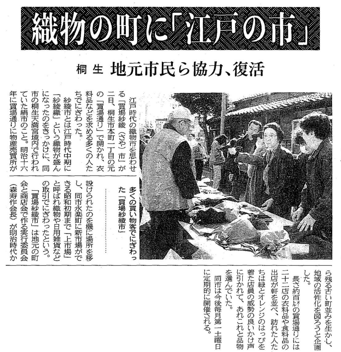 思いを定めた森さんは1996年3月、桐生市本町の買場通りで「買場紗綾(かいばさや)市」と銘打った青空市を始めた。
