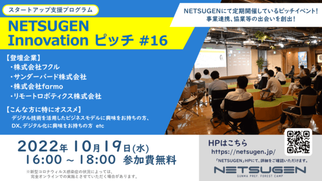 今回は、群馬県・NETSUGEN Innovation ピッチと、東京都・NEXsTokyoがコラボし、スタートアップの挑戦を支援します。