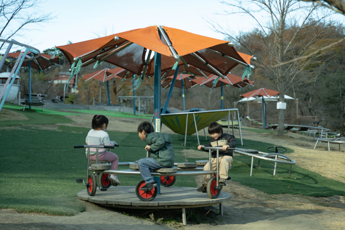 その活動の場として欠かせないのが、観音山公園にある「ケルナー広場」だ。ドイツの遊具デザイナー、ハンス・ゲオルク・ケルナーさんがデザインした、他の公園では見たこともない形・色の遊具が並ぶ広場で、入場料は無料。その誕生にも、美和子さんの行動力は欠かせなかった。