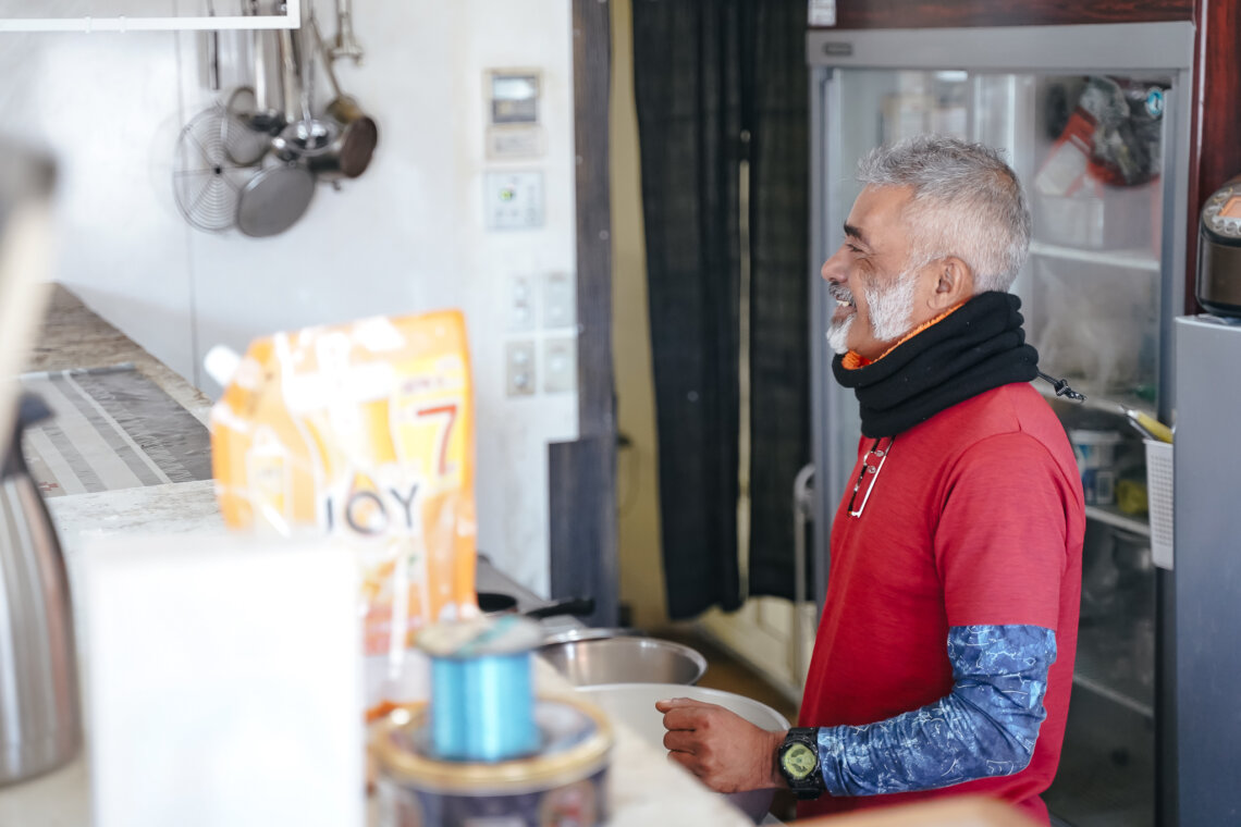 「大変じゃない。楽しいですよ。毎朝『今日は何食べようかな』『これとこれが合うかな』って考えながら作る。毎日同じもの食べたくないじゃないですか。だから、自分たちが食べたいものを作るんですよ。作るのも楽しい。作品を作ってるみたいな感じですね。メニューとかレシピはないけど、『寒いからクミンを多めに入れよう』とか、『元気になるスパイスを入れよう』とか、その時々で自分が作りたいものを作ってるんですよね」(クンドーリさん)