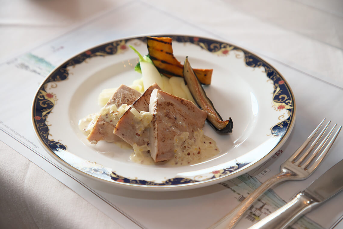 両日とも昼食時に上州地鶏の試食会が開かれた。1日目は「上州地鶏モモ肉と県産野菜の和だしトマトホイル焼き」、2日目は「上州地鶏ムネ肉のコンフィと長葱のブレゼに白ワインマスタードソースを」。前者は脂のりの良いモモ肉の香りと甘みを生かしたシンプルな調理。後者はムネ肉を低温でふっくら仕上げてパサつきを抑え、濃厚なクリームソースを合わせた。上州地鶏ならではの「独特の食感と奥深い味わい」を堪能する。
