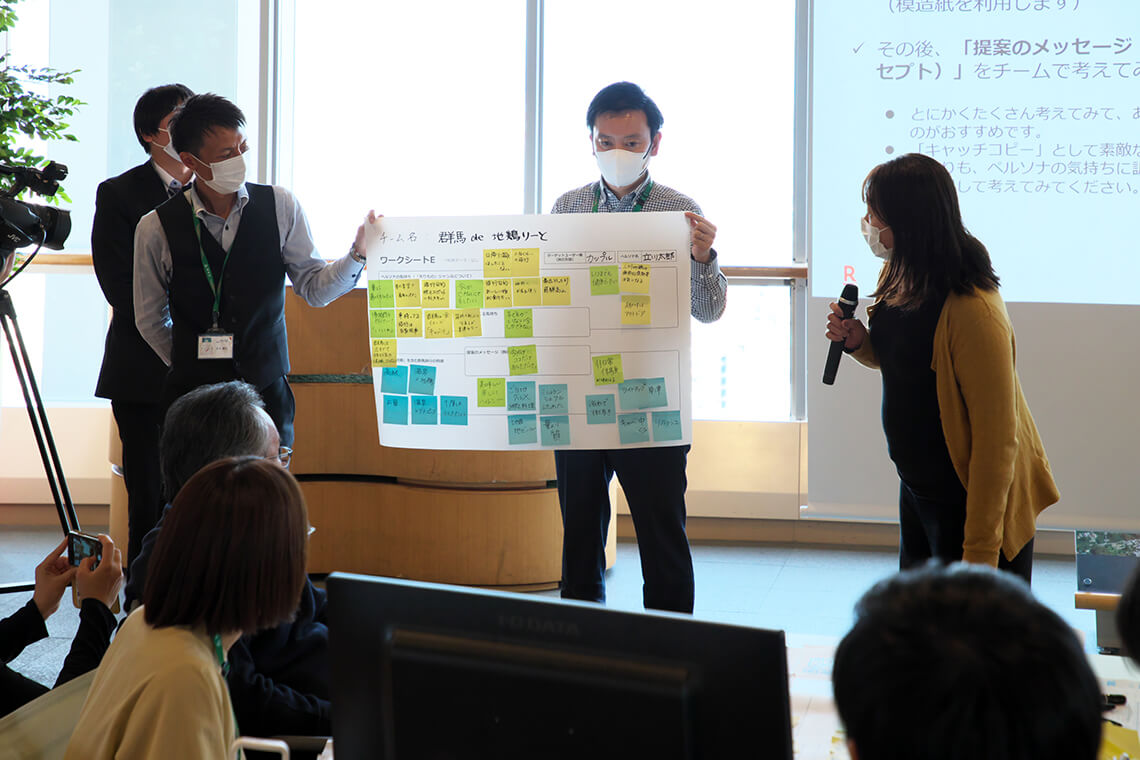 私たちのグループでは27歳の独身女性をペルソナとして設定し、学生時代の修学旅行の楽しさを思い出しながら『第二の修学旅行』として伊香保温泉に行くコースプランを作成した。そこに健康志向を結びつけ、上州地鶏という機能性を持った食材をしっかり使うことで、温泉プラスアルファ健康増進のプランにした。すでに商品はある。今回の体験を生かし、ブラッシュアップしていきたい」