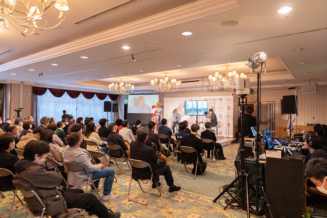 話題のYouTube番組「日経テレ東大学」と群馬県がコラボした「Re:Hack」特別セッション。レギュラーのひろゆきさんとプロデューサーのパンダさんが登壇し、山本一太県知事と熱いセッションを繰り広げます。さらにレギュラーの成田悠輔さんは海外のどこかからリモート参加の予定でしたが、Wi-Fiがつながらない状況のまま、ひろゆきさんと山本知事のガチンコ勝負。会場は多いに盛り上がりました。