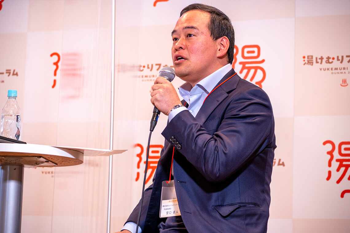 宮口: 群馬県の課題の一つはライバルが多いことかなと思います。私がいる長野県ですとか、隣の栃木県や伊豆・箱根のような温泉地など、ライバルはたくさんいます。ライバルが多い中で群馬県版リトリートは何なのかをしっかりと定めて、どういう風にオール群馬でまとまるか、また、自分たちでこういうものをやっていくというメッセージを明確にして、皆さんが一番目を向けている首都圏のターゲットである方々、例えば、癒されたい方、長期滞在のグローバルノマドワーカー、インバウンドの方でもいいですが、そういった方々にわかりやすくメッセージを伝えて他のライバルと差別化を図っていくこと。ここが一番の課題であり、取り組むべきところという気がします。