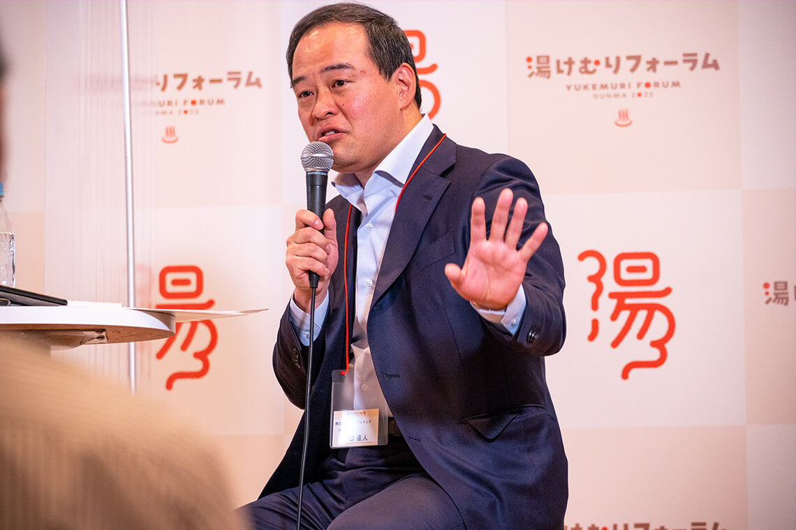 宮口: 群馬県はポテンシャルしかないと思っています。私は父方が伊勢崎の出身なんです。今は片品村の村づくりをみなさんと一緒にやっていますが、群馬県は私から見たら素晴らしいところです。私は今、千葉県に住んでいるのですけれど、関東圏から見たら一番手頃にリトリートができるところが群馬県です。つまり、群馬県のリトリートは、日本一の温泉があるおじいちゃん、おばあちゃん家、これに尽きるわけですね。