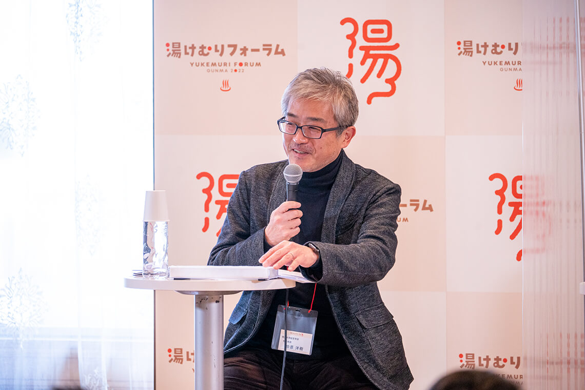 田原: 確かに今までは温泉旅館に一人で申し込むのは気兼ねしてしまうことがありました。受け入れが多様性を持っていただけると我々も接しやすいですね。ところで、リトリートは非日常と言われます。これが群馬県にとってウイークポイントになりうると僕は思っていて。と言うのは東京から50分のこの距離感、ここで長期滞在にこだわってしまうと、月から金までは丸の内で仕事をしているのに、ずっと非日常の世界に誘うのかという話になります。ですから次に考えなければいけないのは、リトリートは非日常ではなく、日常と非日常をその地域で循環させることができるような仕組み、つまりファミリーで長期滞在する場合、教育あるいは医療・介護をどうするかという問題も出てきますよね。プラス仕事もそうです。ですから非日常ばかりではなく、日常を整えていくのがリトリートの今後のあり方ではないかと私は思います。例えばオンラインがかなり拡充してきたので、教育制度はオンライン授業が受けられる、医療・介護に関してもオンラインシステムが整ってきている、働き方もまさにワーケーションですよね。このトライアングルに観光がプラスすることでより強固なリトリート体制が組めると思うのですけれど、どう思われますか。