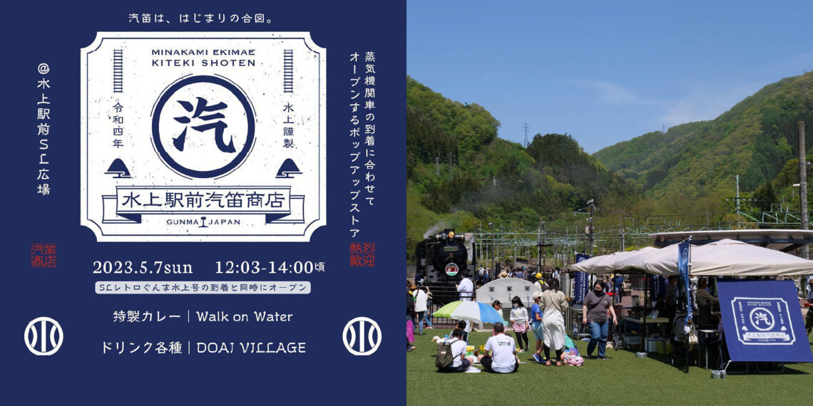 「SL関連で観光協会と協働して始めたのが「水上駅前汽笛商店」です。春から秋にかけて、高崎駅と水上駅の間をSLが運行していて、水上では3時間ぐらい停車時間があるんです。その時間をより楽しんでもらおうと、地元の良品を集めて並べたマーケットイベントを開催しました。これも2021年から2022年にかけて十数回やりましたね」