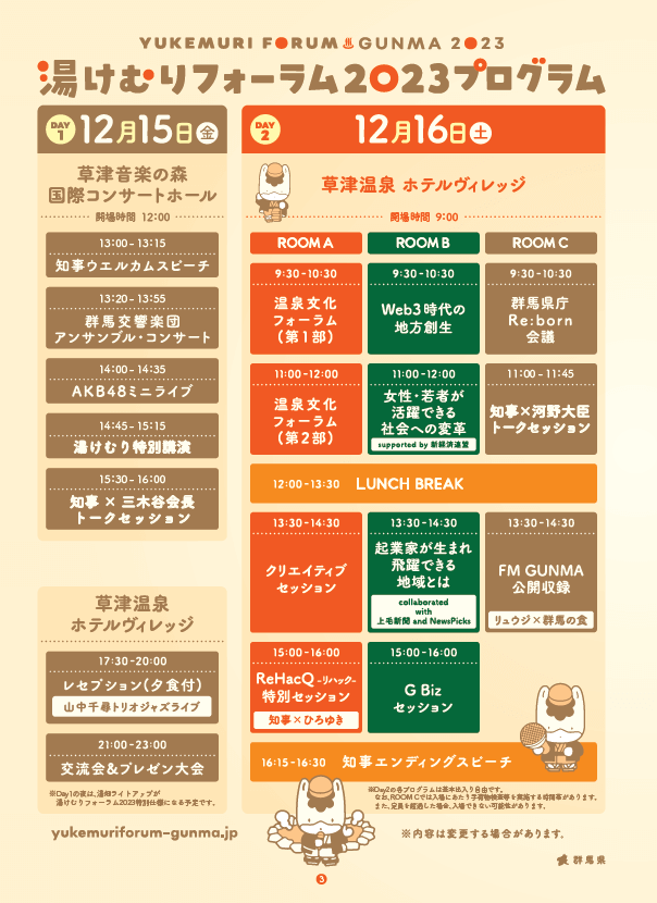 昨年、初のリアル開催で大変ご好評をいただいた「湯けむりフォーラム2022」をさらにパワーアップさせ、12月15日(金)から16日(土)の2日間、日本を代表する温泉地である草津温泉で 「湯けむりフォーラム2023」 を開催しました。